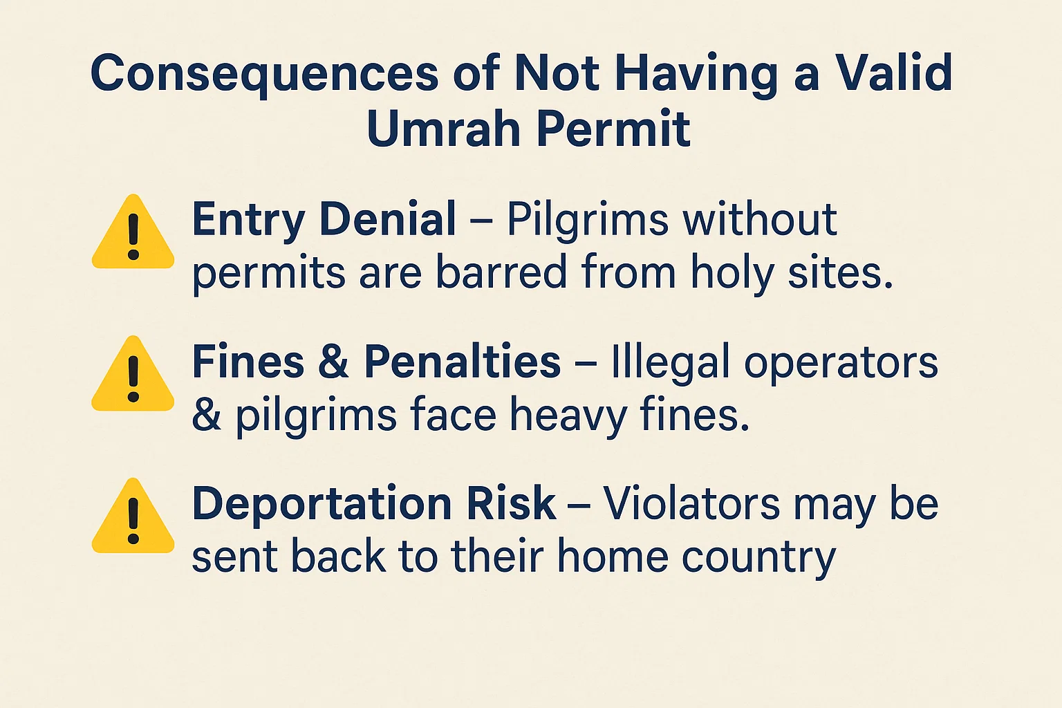 Traveling without a permit? Pilgrims risk denied entry, fines, or deportation by Saudi authorities.